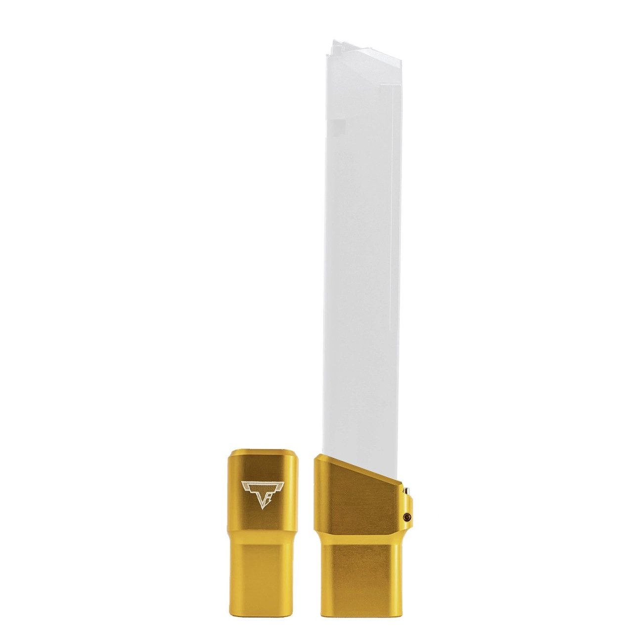 This base pad does add a slight amount of extra weight to the magazine which helps the empty mag drop free easier for faster reloads. This GLOCK base pad, just like all of our base pads, is designed to give you the edge over your adversaries. We use our patented push pin design to lock the base pad to the magazine, which makes for easy field stripping and cleaning your magazines between stages. Just push down the pin, slide the base pad on and push the pin up to lock the base pad onto the magazine. Our one piece design is great because there are no extra parts or tools needed to attach the base pad to your magazine. The base pad itself is machined out of billet aluminum and is hard anodized to ensure durable long lasting color. All machining and manufacturing is done in the USA.