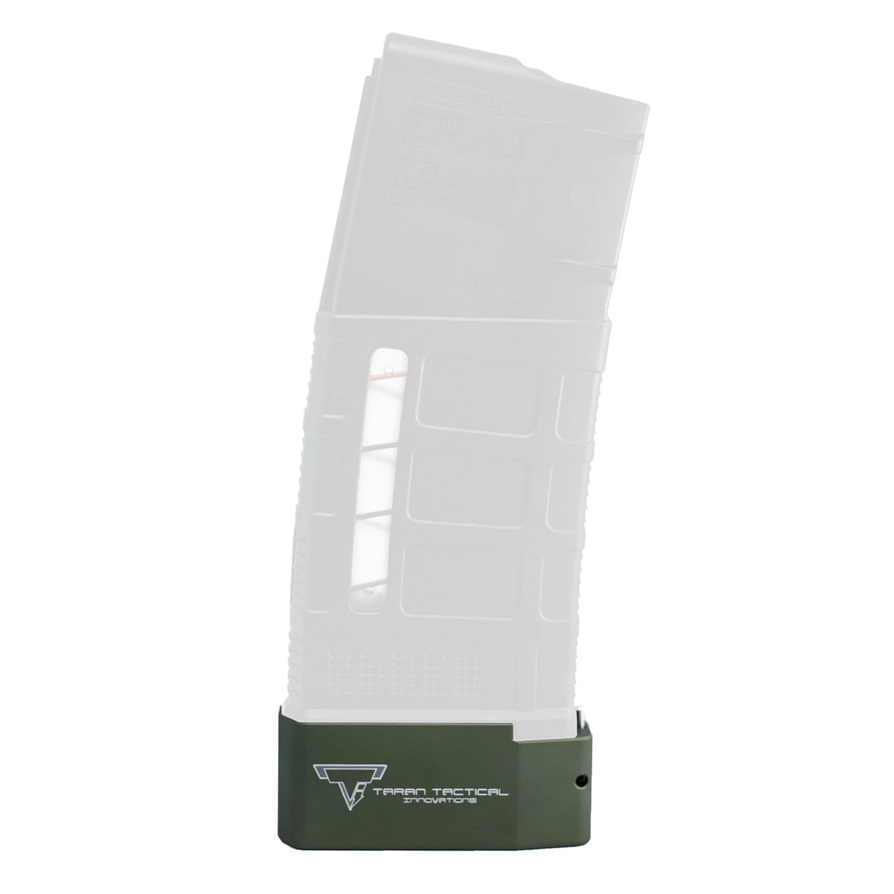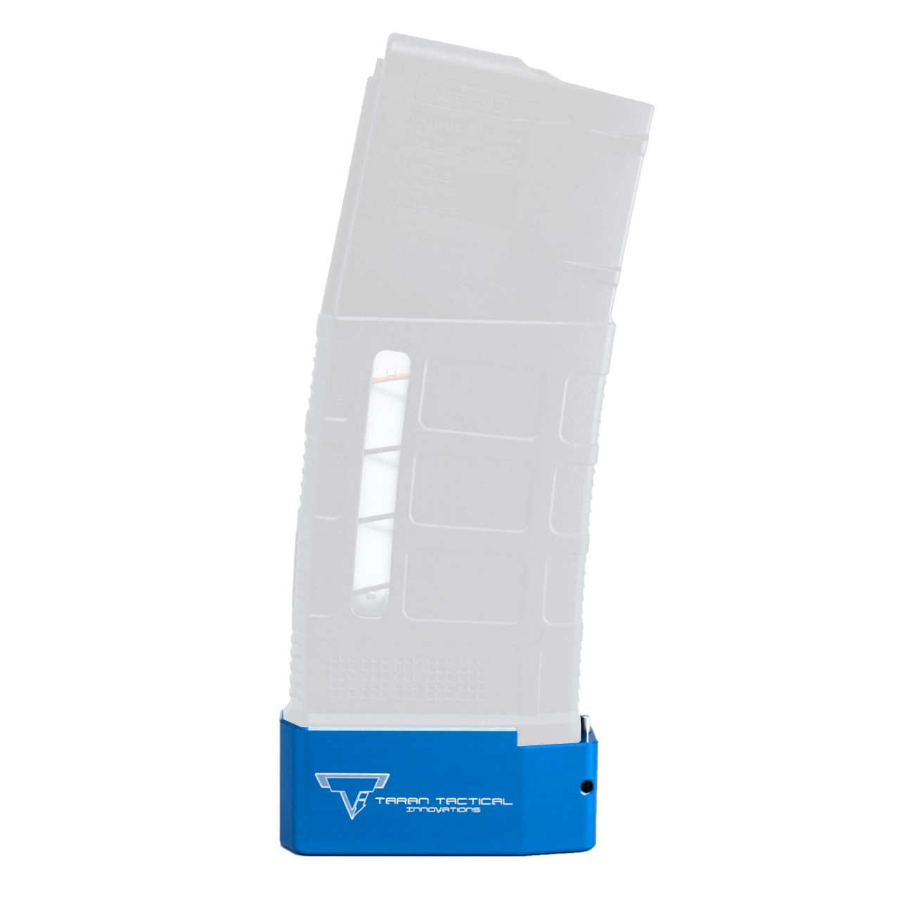 This Taran Tactical Innovations .308 PMAG base pad works on any .308 20 or 25 round PMAG magazine. This TTI base pad will add 5 extra rounds to a PMAG 20 round magazine and extra 6 rounds in a 25 round PMAG magazine. This TTI base pad does add a little extra weight to the magazine which helps the empty mag drop free easier for faster reloads. This TTI .308 PMAG base pad, just like all of our base pads, is designed to give you the edge over your adversaries. We use our patented push pin design to lock the base pad to the magazine, which makes for easy field stripping and cleaning your magazines between stages. Just push down the pin, slide the base pad on and push the pin up to lock the base pad onto the magazine. Our one piece design is great because there are no extra parts or tools needed to attach the base pad to your magazine. The base pad itself is machined out of billet aluminum and is hard anodized to ensure durable long lasting color. All machining and manufacturing is done in the USA.