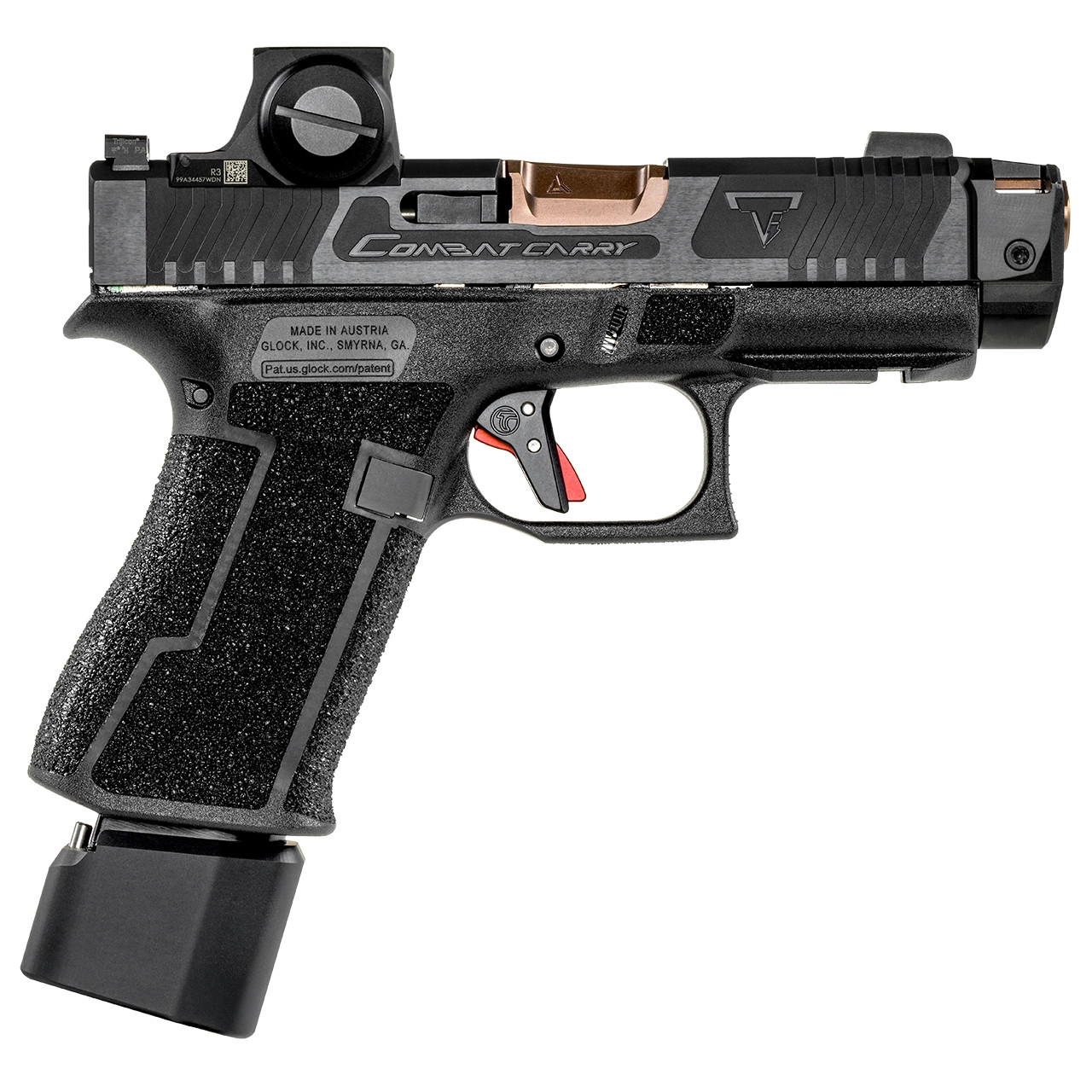 Incorporating unmatched looks and performance, the next generation TTI Combat Carry 43X is here. From our latest slide cuts that enhance grip and functionality, to the co-witness Trijicon night sights paired with the SIG Romeo-X, every part of this gun has been enhanced to create the ultimate carry pistol.